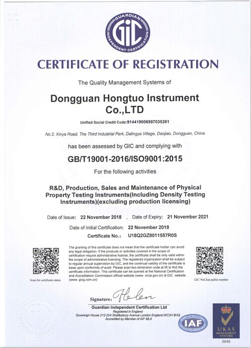 宏拓儀器通過(guò)ISO9001:2015質(zhì)量體系管理認(rèn)證,通過(guò)國(guó)家計(jì)量測(cè)試中心全面質(zhì)量與性能檢測(cè),獲得國(guó)家計(jì)量器具型式批準(zhǔn)CPA證書(shū),參與起草制定: 【GB/T 1040.1-2025塑料 拉伸性能的測(cè)定】、【GB/T 1634.1-2025塑料 負(fù)荷變形溫度的測(cè)定】、【GB/T 44559.1-2024塑料 硬質(zhì)塑料沖孔性能的測(cè)定】 、【GBT 43139-2023鑄造鋁合金液減壓凝固試樣密度檢測(cè)】......等標(biāo)準(zhǔn)。